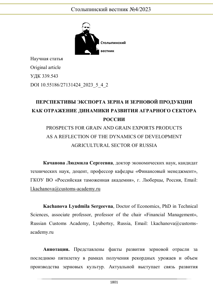 Проблемы и перспективы развития зернового экспорта